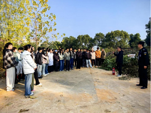 疏散演练结束后,2025级研究生前往学校花房后方空地区域,参与灭火器实操培训。保卫部刘诚老师首先系统讲解了火灾预防常识,并详细演示了灭火器的正确使用步骤与方法。在认真观摩后,同学们分组进行实操,每人手持灭火器,轮流体验扑灭模拟火源的全过程。