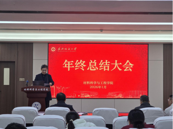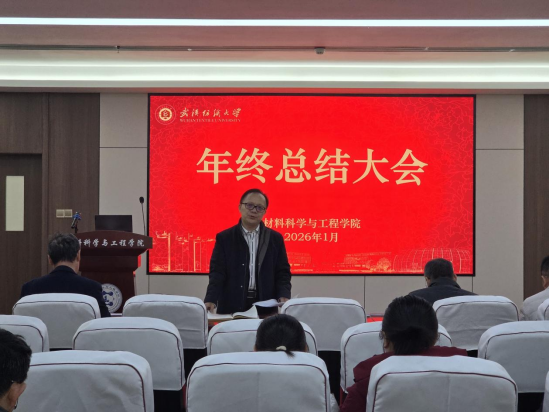 为精准传达学校会议精神、统筹推进寒假及后续重点工作,1月16日材料学院召开年终总结大会,全面梳理核心任务、明确责任分工,凝聚全院共识推动各项工作落地见效。学院班子成员、全体教职工参会,会议由学院党委书记王罗新书记主持。