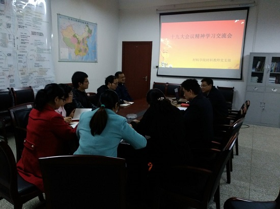 为了深入学习领会贯彻习近平新时代中国特色社会主义思想和党的十九大精神,11月16日下午,材料学院各教工支部开展了以“党的十九大精神学习交流”为主题的支部党日活动。