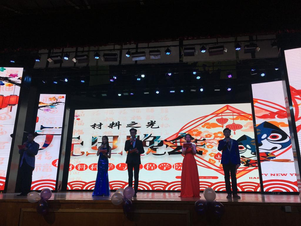 2017年12月27日晚,第八届“材料之光”科技文化节暨2018新年晚会在大学生活动中心演播厅隆重举行。材料学院党委副书记秦梦,辅导员黄鹤、祝捷、张辉老师及2017届新生班主任代表顾绍金、刘学、叶德展、刘洪涛等老师应邀来到晚会现场,和全场材料学子共同分享了热情洋溢的视听盛宴。
