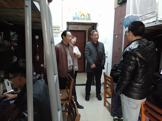 2月19日下午,学院党委书记罗汉春、副院长王罗新、副书记秦梦带领学院学生工作全体人员走访了阳光校区材料学院学生宿舍,全面了解新年返校同学的学习、生活情况,并对同学们表示新春问候。