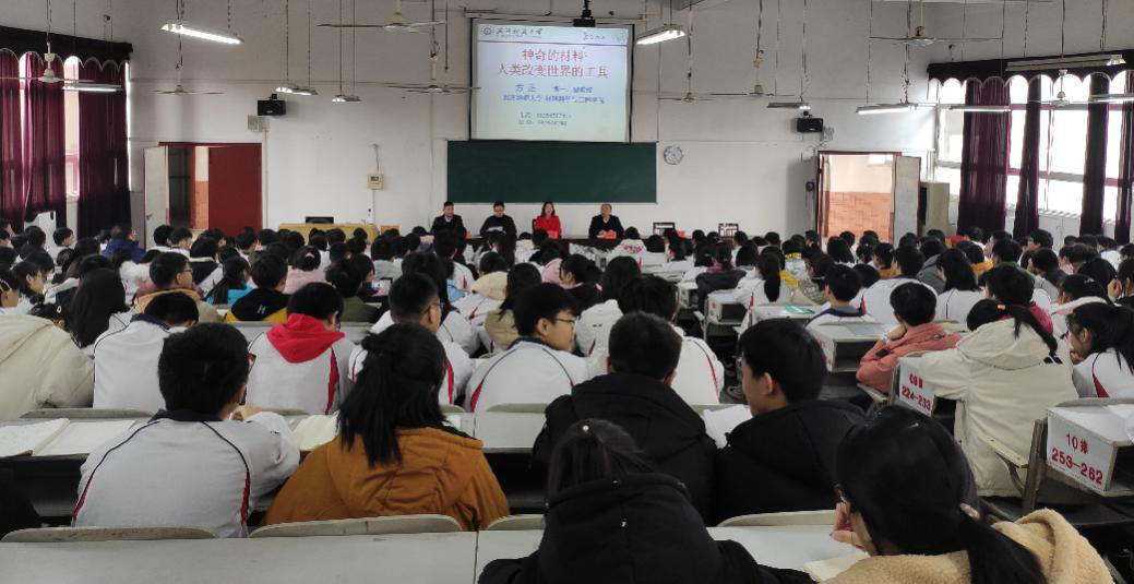 材料学院方正副教授开展了题为《神奇的材料 人类改变世界的工具》的科技讲座,详细的讲述材料与人类文明的互动发展,从基础知识、应用场景、技术路线、产业空间、未来前景等几个方面,讲解了学生们感兴趣的材料学科知识,使学生认识到材料对人类历史、环境、能源、信息、科学技术及国民经济的巨大作用。讲座让学生们零距离了解当前材料学科的前沿动态、专业发展变化和市场应用,现场播放的视频—《最前沿的高科技材料》,更是让现场的学生们非常兴奋,对材料魔术般的变化惊叹不已。