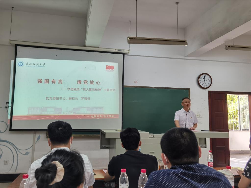 会上,校党委常委、校党委副书记、副校长罗锦银同志以《强国有我 请党放心——学思践悟“伟大建党精神”主题班会》为题,为大家带来了一堂精彩生动的思政课。伟大建党精神是中国共产党人精神谱系的根和魂,罗书记四个方面阐述了伟大建党精神内涵,每一个时期都要有每一个时期的精神。还对同学们寄予厚望,希望当代青年要有精神、有豪气鼓励学生们敢想敢做、奋力拼搏,争做新时代有志有为好青年,不负党、国家和人民的期望。