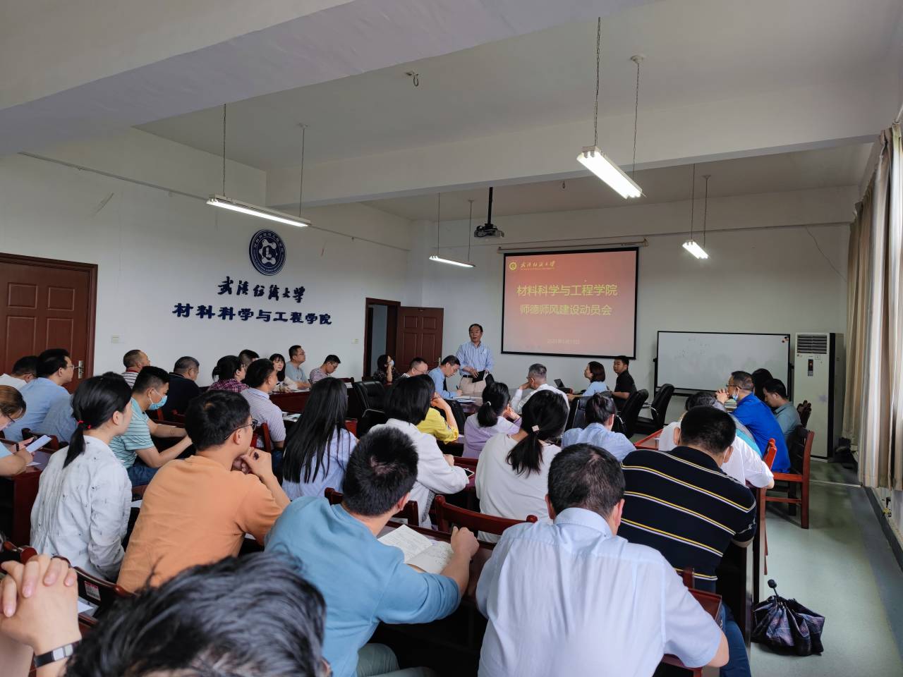 为落实立德树人根本任务,强化师德师风教育,规范教职员工从教行为,5月13日下午,材料学院在8F506会议室召开师德师风建设动员会。学院党委书记罗汉春做了专题讲话,全院教职工参加会议。