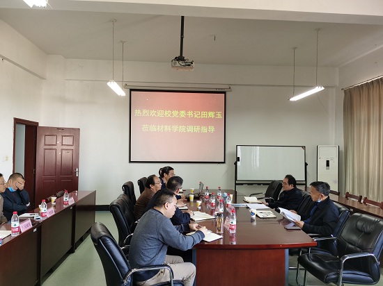 11月11日下午,校党委书记田辉玉到材料学院调研指导,学校办公室主任杜新年陪同调研。材料学院班子成员、部分学院管理人员和教师代表参加了调研会。调研会由材料学院党委书记罗汉春主持。