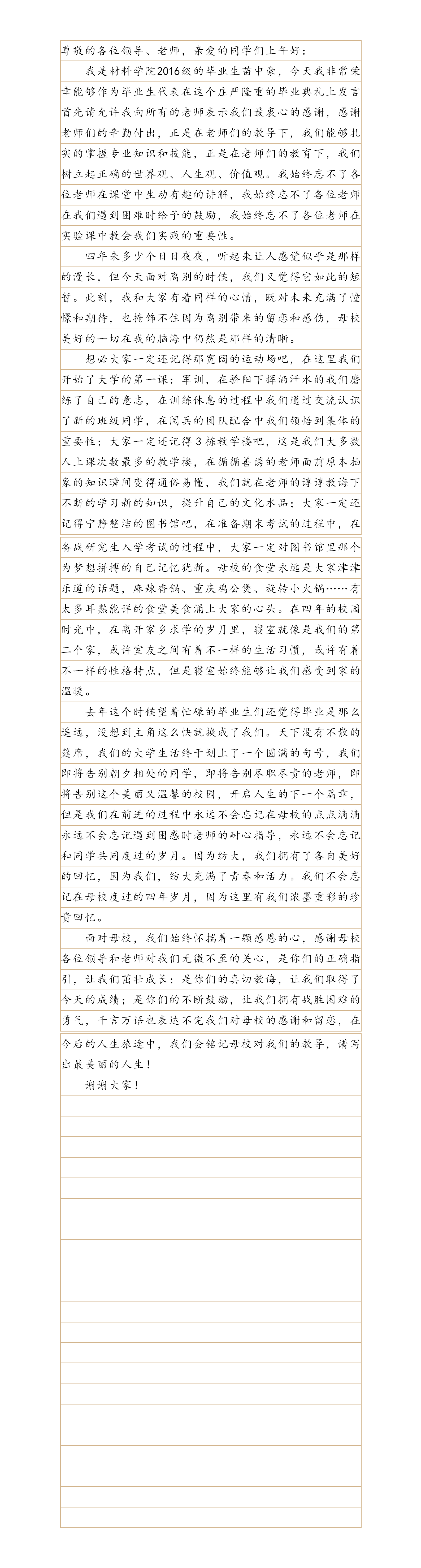 下一条: 材料学院教师代表孙九霄寄语2020届毕业生