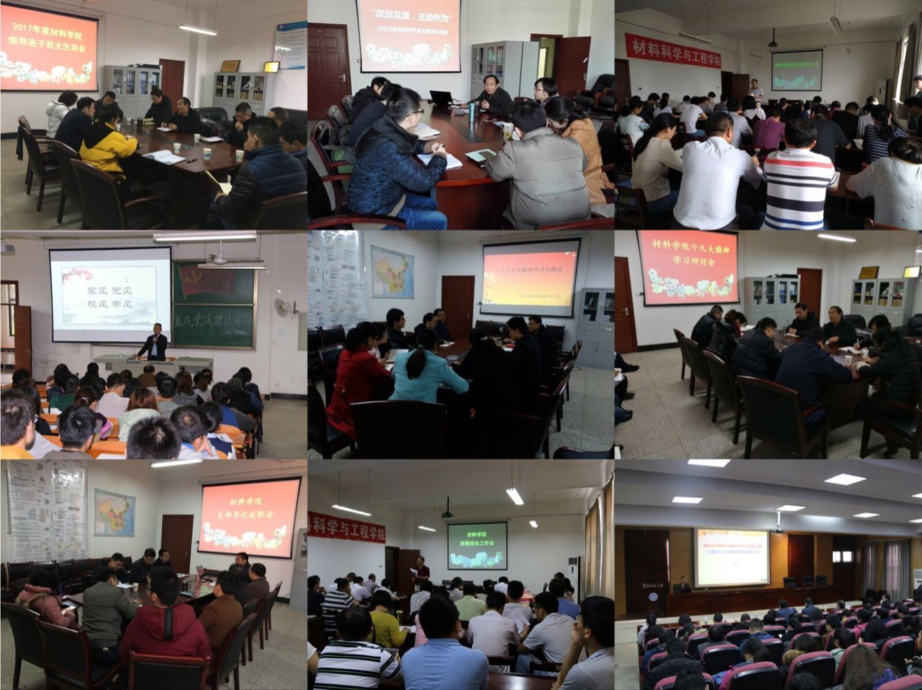 编者按:2017年是学校实施“十三五”规划的重要一年,也是学校“双一流”建设推进年,一年以来,材料学院党委深入贯彻全国高校思想政治工作会议精神,在党的十九大精神的指引下,坚持党的领导,坚定不移走中国特色社会主义高等教育发展道路,不断增强“四个意识”,不断增强“四个自信”,筑牢思想基础,坚守立德树人的根本使命,切实加强和改进学院思想政治工作,以“一切为了学生”为中心,着力提升学生专业素质,力求促进学生全面发展,为推动学校发展提供了坚强保证和精神动力。