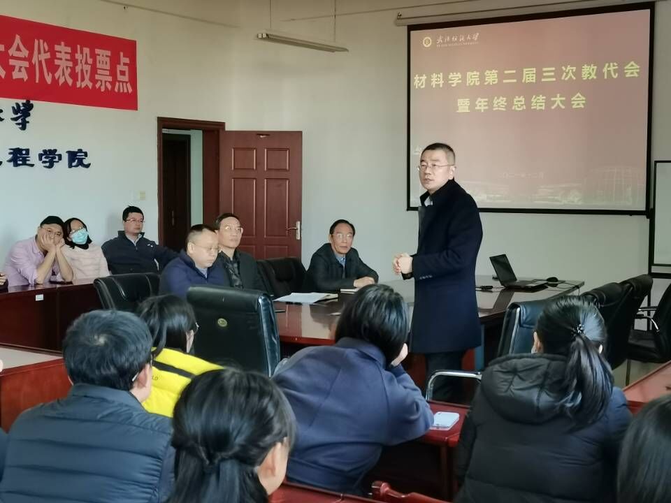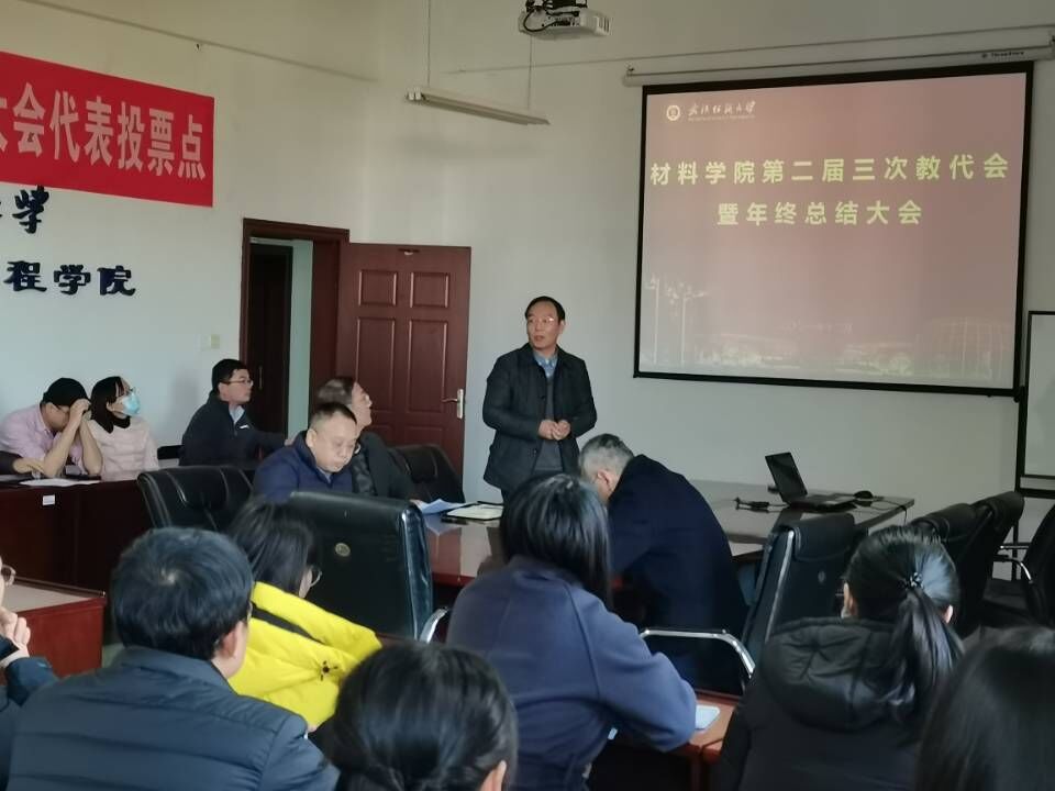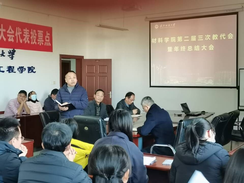 12月23日下午,材料学院在8栋506会议室组织召开了第二届第三次教代会暨年终总结大会,学院全体教职员工参加会议。会议由学院党委书记罗汉春主持。