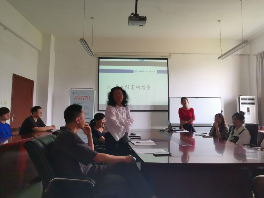 5月26日下午3点,材料学院系列考研指导活动——高分子考研专场指导会在F506召开,院党委副书记侯畅、高分子系主任左丹英老师、高分子11901班班主任谭海英老师、高分子11902班班主任朱宗明老师参加会议,会议由辅导员曾玉竹主持。