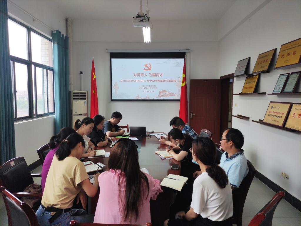 6月1日上午,材料学院实验与行政教师党支部在8F503会议室开展支部主题党日活动,集中学习习近平总书记在中国人民大学考察时的重要讲话精神。全体支部党员和学生党支部书记参加了本次活动。材料学院党委书记陈桂枝为支部党员上了一次微党课,领学了习近平总书记在中国人民大学考察时的重要讲话。党委副书记侯畅主持了本次活动。