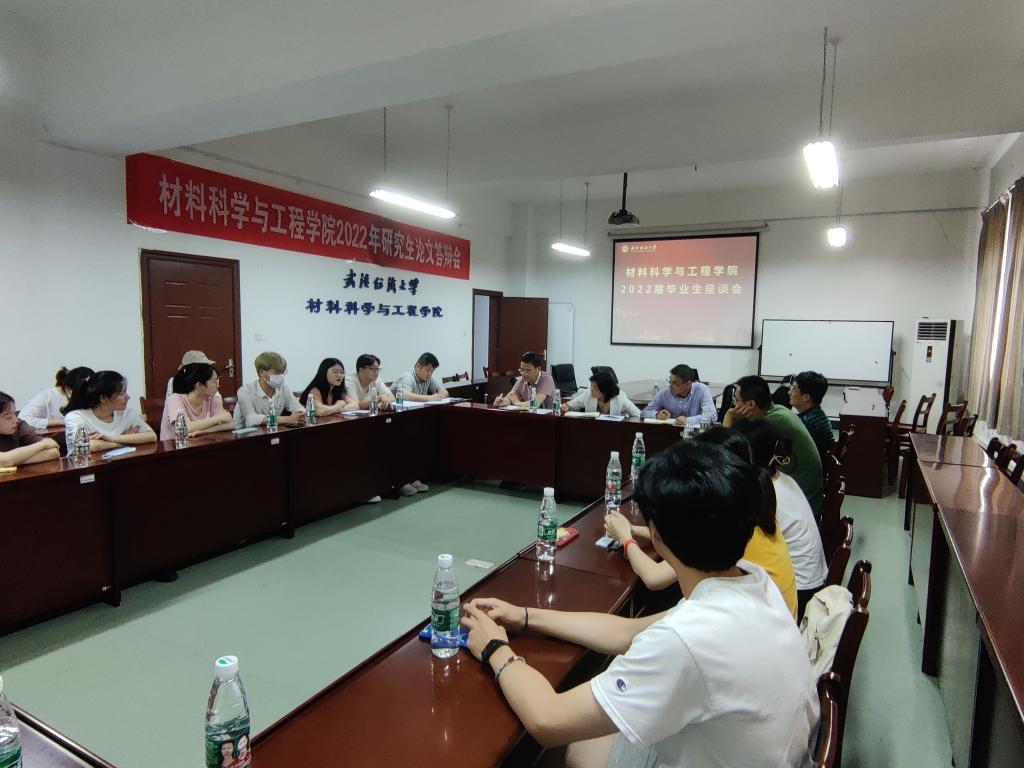 6月2日下午3点半,材料学院举办毕业生代表座谈会暨校友联络员聘任大会,院党委书记陈桂枝,院长王罗新,副院长顾绍金、刘欣,复合材料系主任孙九霄老师,辅导员胡晓、曾玉竹,2022届毕业生代表,校友联络员参加会议,会议由陈桂枝书记主持。