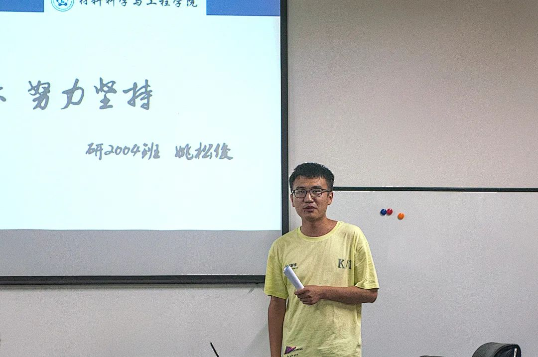 首先,来自材料学院研究生2004班的研究生学长姚松俊作为代表发言,向大家分享了自己在本科、研究生阶段的学习生活经历。其中,他以自己曾经的休学经历告诫我们:提升个人学历,树立奋斗目标,坚持不懈努力的重要性。王罗新院长就姚学长的发言为大家的学习方向以及个人自我价值的实现提出了建议,引导同学们为自己树立符合自身实际的人生目标,有所追求,避免迷茫。