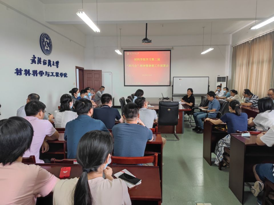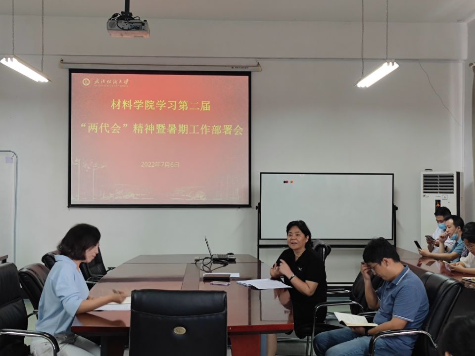 会上,首先,党委书记陈桂枝重点传达了中国工程院院士、校党委常委、校长徐卫林院士做的题为《守正创新勇争一流奋力谱写“美好纺大”高质量发展新篇章》-在ok138cn太阳集团第二届一次“教代会”上的学校工作报告,大会报告总结了第一届一次“教代会”以来的工作,学校较好地完成了“十二五”“十三五”的目标任务,制定、出台学校“十四五”发展规划,取得了新突破、新进展,展现出新气象、新风貌,党的建设得到新加强,学科建设迈上新台阶、人才培养取得新成效、科技创新作出新贡献、师资队伍实现新突破、社会服务展现新作为、开放办学开创新局面、服务保障得到新拓展。谈到学院发展时,陈书记强调,材料学院是一个朝气蓬勃的学院,是一个高知人才汇聚的学院,办好社会主义大学,就必须坚持党的领导,大家必须团结一心,协力奋进。在学科建设方面,必须要坚持走纺织纤维材料的学科特色,加强研判国际形势、行业形势、学校形势,对标对表,与此同时,夯实基础,突出学科优势,全力建设“一流学科”,多与其他学科深入融合,联合开办特色专业;在人才引进方面,发挥科研团队优势,吸纳更多专业人才;在学生培养方面,全面实行本科生“导师制”,加强研究生培养,鼓励更多本科生和研究生投入科技竞赛;在加强学院文化建设方面,让材料师生有更多的幸福感、认同感。随后,陈书记对学院暑期期间的疫情防控、学生管理、教学工作、学术科研等几个方面进行了部署。