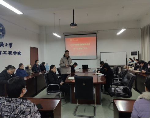 百尺竿头须进步,十方世界是全身。为进一步凝聚全院教职工共识,推动学院各项工作在新的一年迈向更高台阶,2月12日上午,材料学院在8F506会议室召开新学期教职工大会。会议由学院党委书记陈桂枝主持,学院领导班子和全体教职工参加。