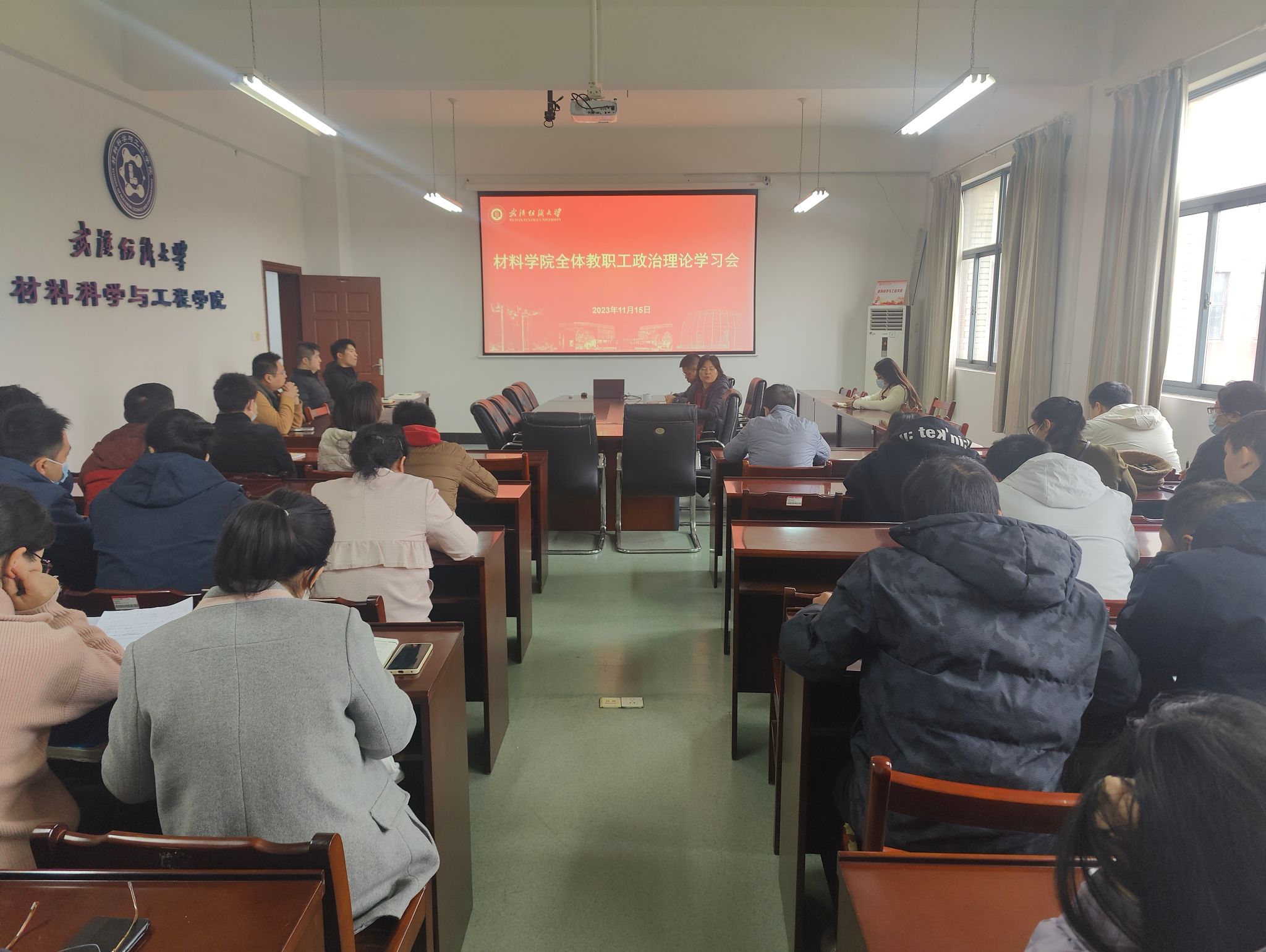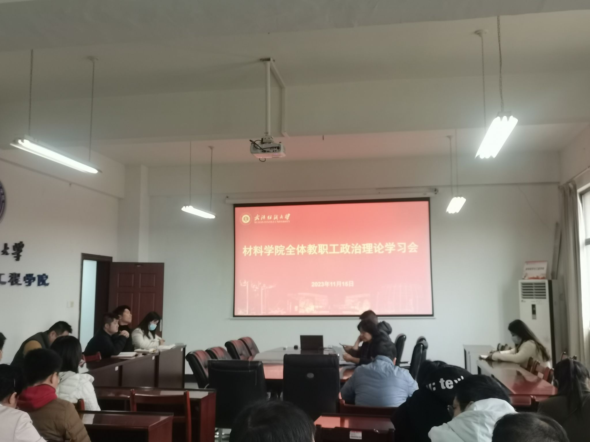 11月15日,材料学院在8F-506会议室组织全体教工党员政治理论学习,传达习近平总书记对宣传思想文化工作作出重要指示精神。会议由学院党委书记陈桂枝主持,学院党委班子成员,全体全体教工党员参加会议。