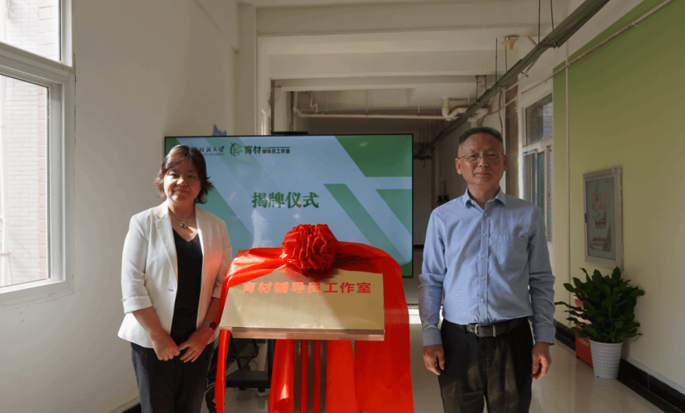 校党委副书记、副校长罗锦银,材料学院党委书记陈桂枝共同为“育材”辅导员工作室揭牌。随后,与会人员一起参观了工作室建设情况,并听取材料学院学生工作负责人做工作室建设情况汇报。