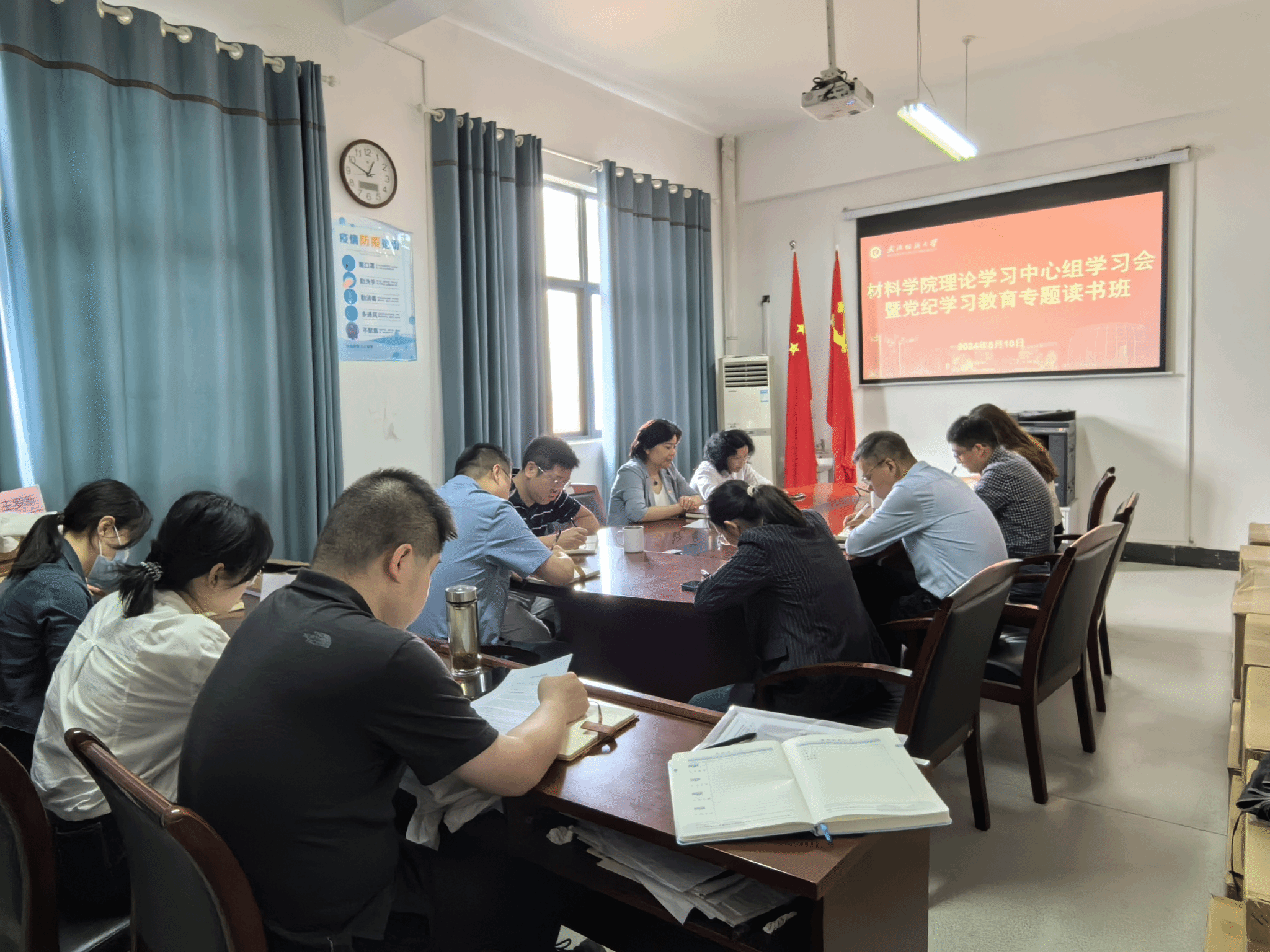 为深入学习贯彻习近平总书记关于党纪学习教育的重要讲话和重要指示精神,深入开展党纪学习教育,进一步增强全院党员干部纪律意识,引导党员学纪、知纪、明纪、守纪,5月10日下午,材料学院召开党纪学习教育动员部署会暨理论学习中心组(扩大)学习会,专题学习研讨新修订的《中国共产党纪律处分条例》(以下简称《条例》)。党委书记陈桂枝主持会议,学院领导班子成员、师生支部书记参加会议。