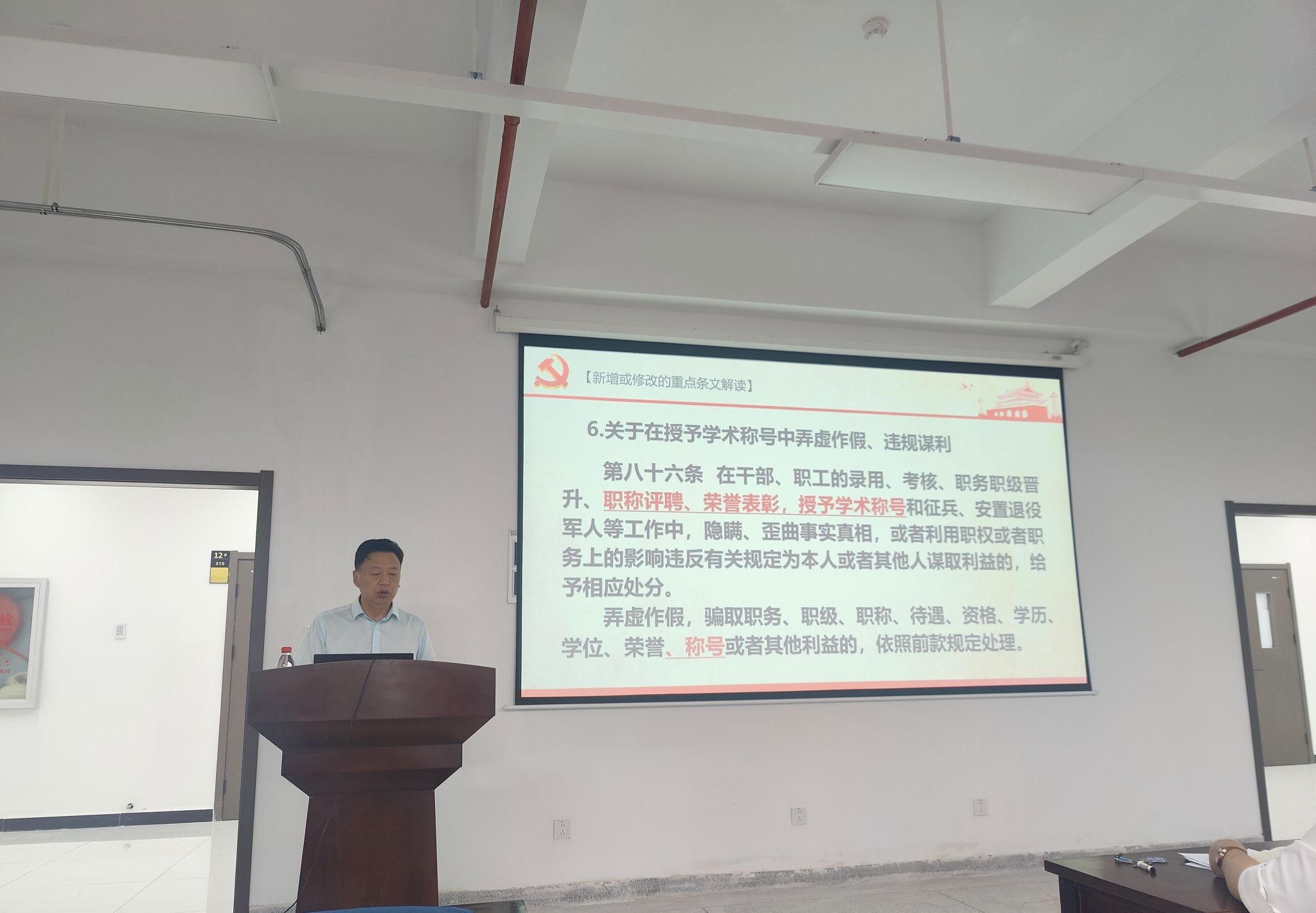 5月30日,为进一步深化党的纪律建设,提升师德师风水平,校党委常委、纪委书记、监察专员程碧海深入材料学院,为全体教职工带来了一场以《学习贯彻纪律处分条例 推动形成遵规守纪高度自觉》为主题的专题党课。此次党课由学院书记陈桂枝主持,学院领导班子成员及全体教职工参会学习。