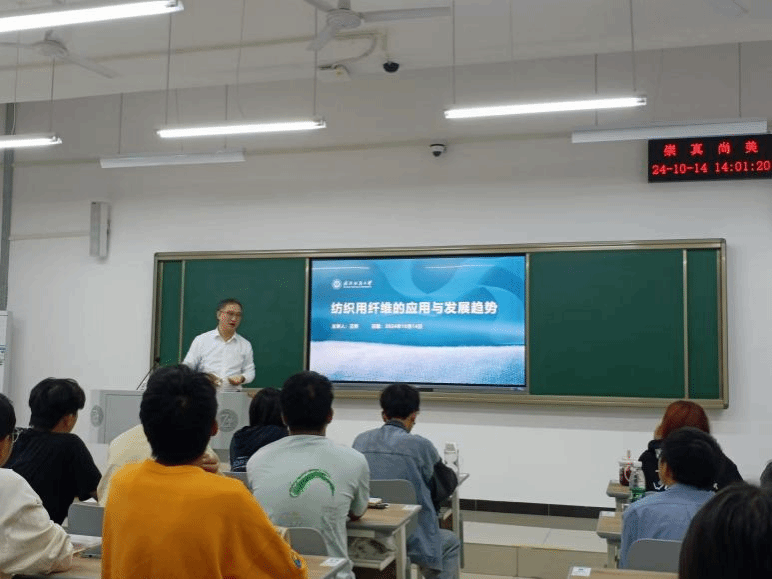 10月14日下午,应材料学院邀请,国家科技进步二等奖获得者、我校阳光学者王桦教授为2024级高分子材料创新班学生作了题为《纺织用纤维的应用与发展趋势》的学术讲座。