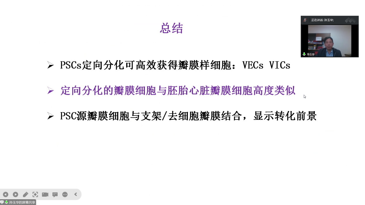 孙教授首先讲解为什么研要研究人工瓣膜,统计得出瓣膜发病率逐年升高已经接近25%,因而研究瓣膜的构建是有相当大的市场潜力,并详细介绍了瓣膜在心脏的位置及构建瓣膜转化医学以及应用。现阶段人工瓣膜的构建主要分为两种:金属瓣膜和生物瓣膜。孙教授研究领域主要在组织工程瓣膜,该瓣膜具有以下优点:优良的组织相容性、耐久性、可以避免被戊二醛钙化。孙教授通过诱导干细胞分化为VICS以及VECS以构建一种自组装、自我更新衰败,同时具有良好力学性能的可再生医学瓣膜。