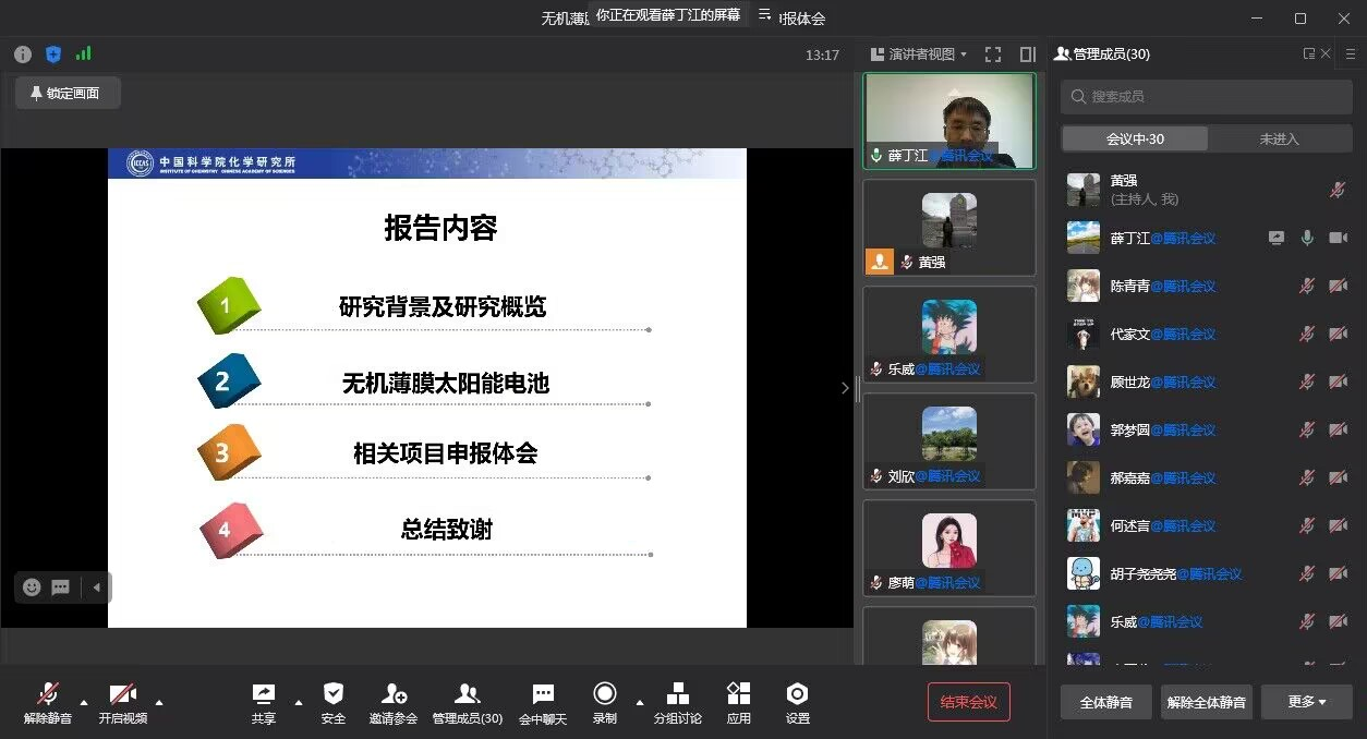 为进一步加强校内的学术交流,活跃学术氛围,推动学科的跨越式发展,2022年11月29日下午OK138太阳集团邀请中国科学院化学研究所薛丁江研究员进行了题名为“无机薄膜太阳能电池研究及相关项目申报体会”的学术报告。该论坛由刘欣教授主持,材料学院部分教师及研究生采用线上方式参加。