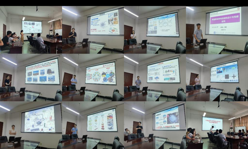 徐杰教师的报告题目是《三维纤维基太阳能水蒸发器的构建及性能研究》。他详细介绍了该太阳能水蒸发器的构建原理和性能,并探讨了其在水资源可持续利用方面的应用潜力。王星教师的报告题目是《AEMWE过渡金属基OER催化剂的设计及机理研究》。他重点讲解了碱性电解水制氢过程中关键的氧化水反应的催化剂设计原理和机理,并展示了一些潜在的应用前景。聂坤教师的报告题目是《纤维基发光材料的结构调控与应用基础研究》。他分享了在纤维基发光材料方面的最新研究成果,包括材料的结构调控方法以及在光电子器件等领域的应用前景。方正教师的报告题目是《纳/微米金属复合材料的快速合成及应用》。她详细介绍了纳/微米金属复合材料的制备方法和特性,并探讨了其在催化、传感和能源等领域的广泛应用。唐清泉教师的报告题目是《梯形微孔高分子的合成、功能化及其应用》。他介绍了梯形微孔高分子的合成方法和功能化策略,并展示了该材料在气体吸附、分离和储存等方面的应用潜力。秦艳敏教师的报告题目是《铁基/碳复合材料的结构设计及储能机理研究》。他介绍了铁基/碳复合材料在能源储存领域的研究进展,包括其结构设计方法和储能机理的深入研究,为新型高效储能材料的开发提供了有益的思路和方法。何承恩教师的报告题目是《石墨烯复合材料及柔性超级电容器》。她讲解了石墨烯复合材料的制备技术以及柔性超级电容器的性能优势,强调了该材料在电能存储和传感器领域的广泛应用前景。