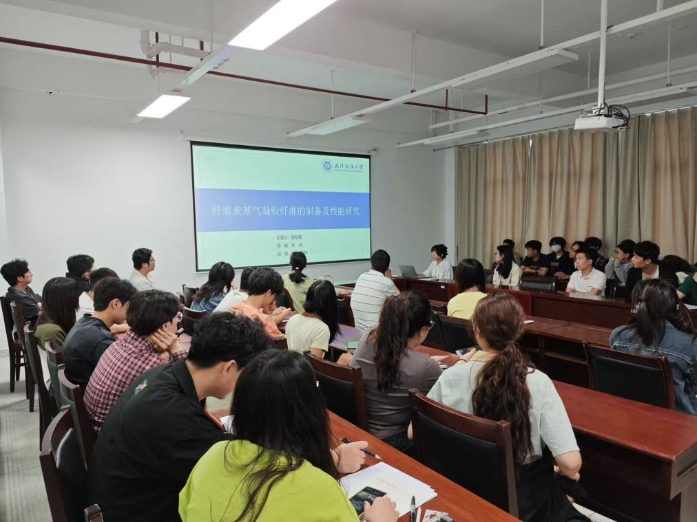 彭欣星同学带来了《纤维素基气凝胶纤维的制备及性能研究》的成果分享。通过湿法纺丝和常压干燥技术,成功制备了具有较高拉伸强度(0.21MPa)和拉伸应变(41.9%)的纤维素气凝胶纤维。研究优化了溶解、纺丝和干燥过程,解决了常压干燥中高孔隙率与高力学性能难以兼得的难题,实现了类似冷冻干燥的效果。该纤维具有良好的力学性能和可纺性,有望应用于多功能化织物领域。