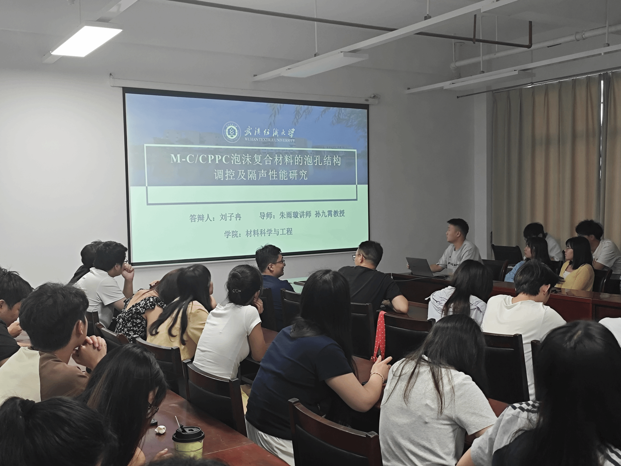 刘子冉同学以《M-C/CPPC泡沫复合材料的泡孔结构调控及隔声性能研究》为题进行汇报。开发了介孔陶瓷/CPPC泡沫复合材料,通过微米级闭孔与纳米级开孔的协同效应,实现隔声性能革命性提升。在1000-2000Hz人类语音核心频段,其平均隔声量高达41.6dB,较传统材料提升97%,远超海军舰艇舱室30dB标准。这种可降解材料同时具备优异隔热性(表面温度降低15℃)和机械强度(压缩模量提升415%),为建筑、交通领域提供绿色降噪方案。