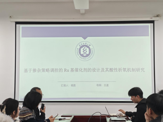 胡胜同学以《基于掺杂策略调控的 Ru 基催化剂的设计及其酸性析氧机制研究》为题,聚焦电解水制氢领域中酸性析氧反应(OER)催化剂活性与稳定性难以兼顾的难题。他创新性地引入路易斯酸碱对(Lewis Pairs)概念,通过掺杂 Al、Ga、In 等元素,成功调控了 Ru 基催化剂的电子结构,显著降低了反应过电位和 Tafel 斜率。实验结果表明,优化后的催化剂在 1.0 A cm⁻² 大电流密度下可稳定运行超过 1000 小时,并揭示了其独特的晶格氧氧化(LOM)反应路径,为设计高效稳定的酸性 OER 催化剂提供了理论指导。
