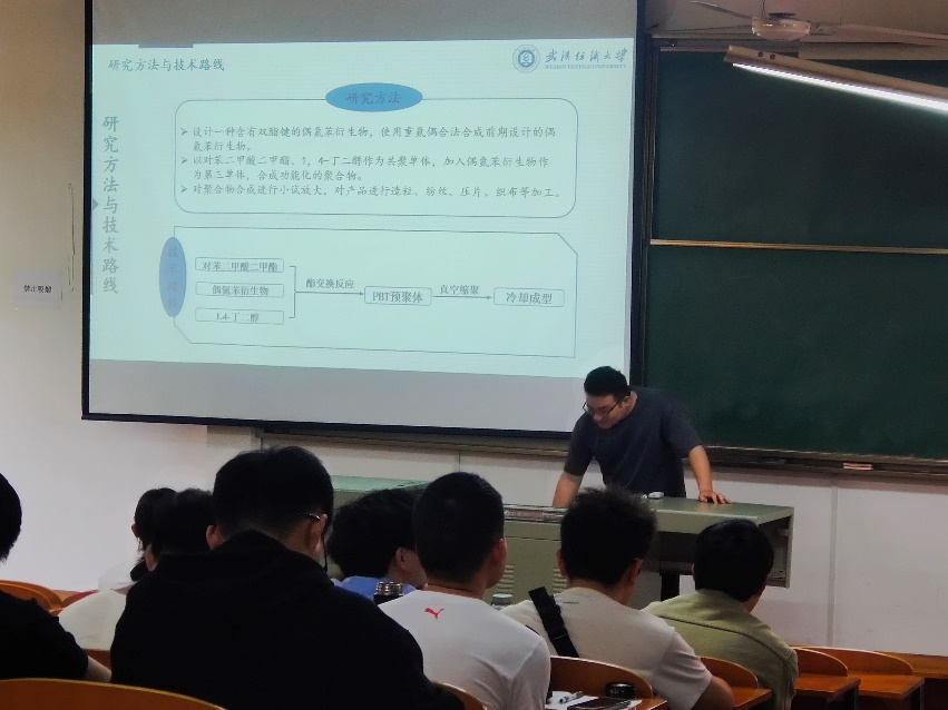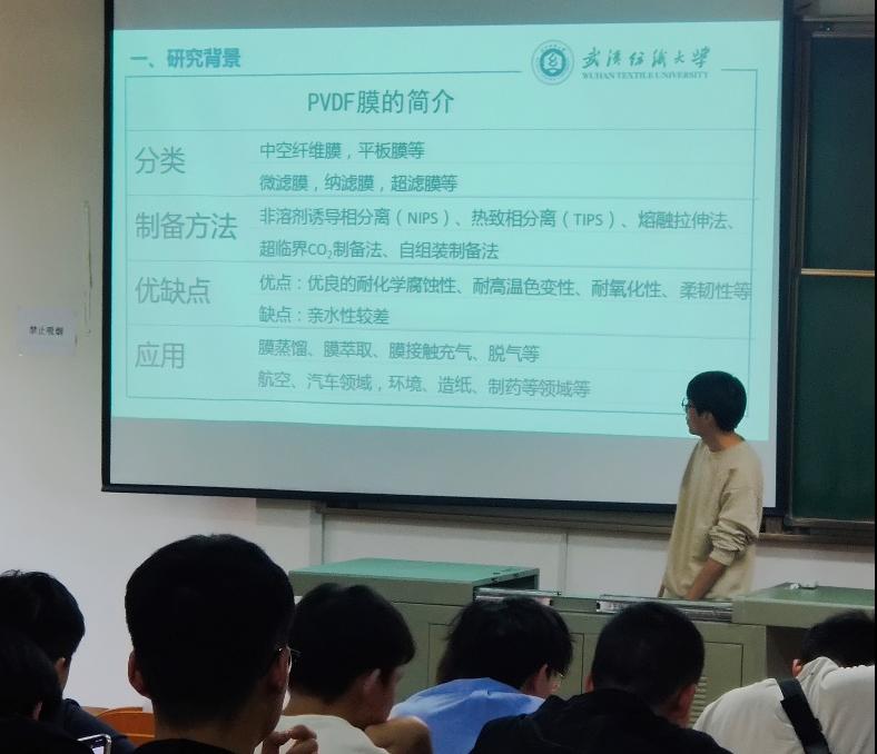 为进一步加强校内的学术交流。OK138太阳集团4月12日举行了研究生论坛。本次论坛由邀请李秀芳、朱雨璇两位老师参加,研究生张吉聪、石凯、徐浪为全体学生和老师以题为“基于偶氮苯衍生物的光致变色聚酯及纤维的制备及性能研究”、“壳聚糖生物粘合剂的制备及其性能研究”以及“液膜表面喷涂聚偏二醇溶液对聚偏二乙烯膜结构及防污性能的影响”的进行论坛报告。