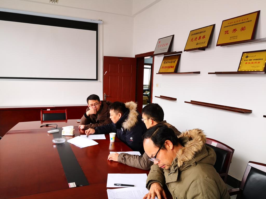 1月12日上午9点,材料学院在学院8F503会议室开展了2020年度国家自科基金申报的第二批辅导,邀请了武汉大学冯俊教授,为参加申报的教师进行一对一辅导。