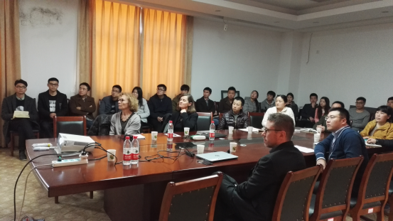 Jean Martinez教授在报告中首先简要介绍了他所领导的法国国家科研中心Max Mousseron生物分子研究所概况(6个部,2个平台,16个团队,共约310人),接着重点讲解了氨基酸、多肽与蛋白质部在“健康与环境生物分子”方面开展的具体研究工作,最后结合我校现有学科特点,由其团队成员Gilles Subra详细阐述了基于生物有机单元构成的结构与性能可控生物材料,如具有医用前景的可室温水溶加工的混杂肽-硅材料、抗菌肽混杂膜和溶胶-凝胶法合成仿胶原多肽水凝胶等的制备、表征与性能评估。会后Jean Martinez教授和团队成员回答了师生关于多肽成药性与毒性等方面提问,并就如何把与纺织相关的羊毛和蚕丝蛋白质及其多肽片段结合起来开展研究,以及教师互访、学生公派留法等进行了深入互动和交流讨论。持续2个多小时的报告会结束后,Jean Martinez教授一行在王栋教授带领下参观了相关实验室。