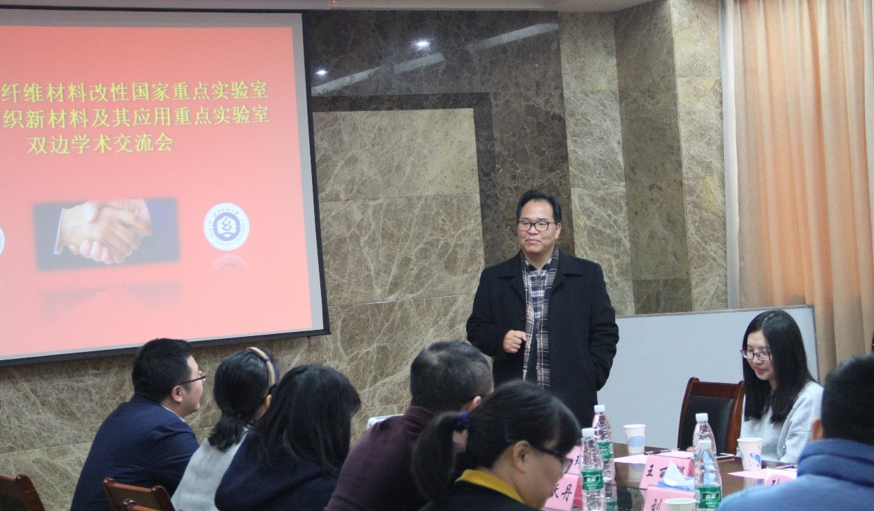 2016年12月18日,应我校OK138太阳集团院长王栋教授的邀请,东华大学纤维材料改性国家重点实验室与我校湖北省纺织新材料及其应用重点实验室开展了双边学术交流会。