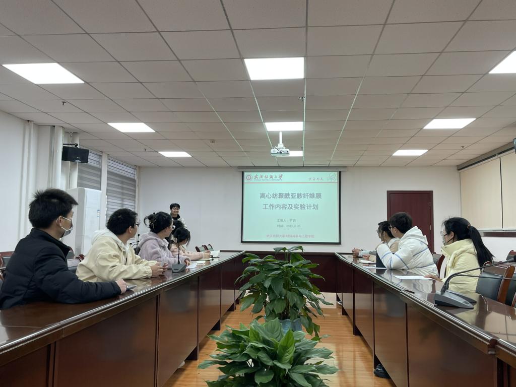 首先,研二同学汇报了近期实验成果以及实验计划,研究主题主要包括采用静电植绒技术制备超疏水防疏冰表面以及聚酰胺酸制备耐高温过滤材料。各位老师对研二同学目前实验方法进行指导,并对未来科研方向进行规划。接下来,研一同学分享了与各自课题相关的高被引文献,研究主题主要包括湿法纺丝技术、静电纺丝结合静电喷涂技术以及离心纺丝技术。最后,研三同学具体分享了对应课题的实验方法和技巧。各位老师要求各年级研究生加快实验进度,提高文献阅读能力及写作能力,并建议参会的本科生从研究生汇报中学习相应的科研知识与学术汇报技巧。