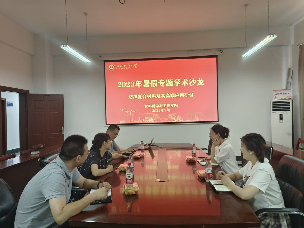 本次学术沙龙活动,重点突出以特色为主题、以项目为纽带、以合作为目的,通过本次沙龙的举办能够带动纺织和复合材料两个专业教师之间的交流和合作,凝聚并打造纺织复合材料及其高端应用领域的科研团队。来自材料学院、纺织学院、国重实验室的六名教师分别进行的学术报告,并围绕未来的研究方向、项目合作、成果转化等领域开展了深入的探讨,会中材料学院孙九霄老师介绍了“船用轻质高强芳纶复合装甲关键技术及产业化”的项目鉴定进展情况,气氛非常热烈。