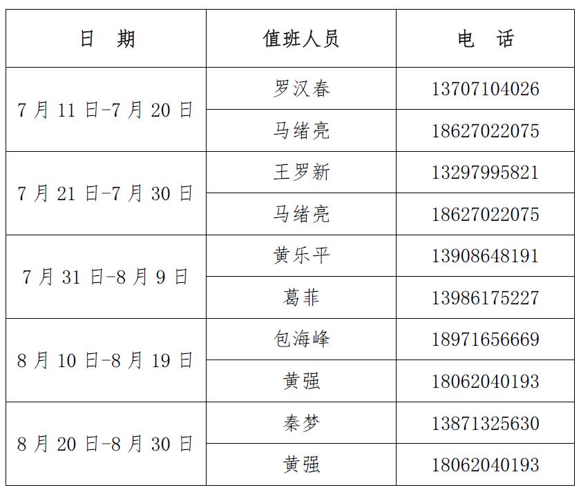 材料学院2019年暑假电话值班安排