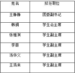 根据《ok138cn太阳集团共青团改革方案》、《ok138cn太阳集团学生会章程》,经自由报名、面试考察等环节,现将材料学院第十届团委、学生会主要学生干部预备人选名单予以公示:(排名不分先后)