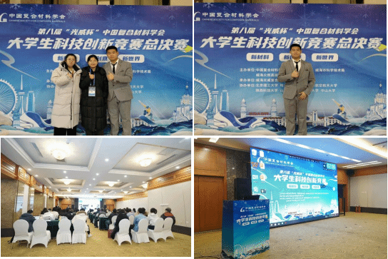 2025年1月3日至1月4日,第八届“光威杯”中国复合材料学会大学生科技创新竞赛全国总决赛在黑龙江省哈尔滨市顺利落下帷幕。我院组建的竞赛队伍(胡爽,刘雪阳,王佳琪,雷僮,邵磊)作为全校唯一一支进决赛队伍,在OK138太阳集团熊思维副教授,OK138太阳集团院长王罗新教授和OK138太阳集团贾迎宾副教授的指导下,完成的“纸造非凡——高性能三明治结构芳纶聚苯硫醚复合纸”项目荣获全国总决赛本科生组三等奖。