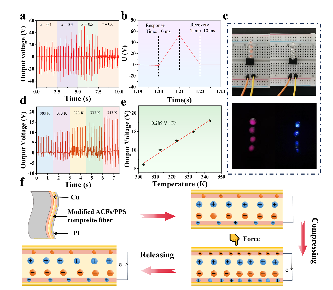 此外,该研究还发现钙钛矿复合纤维具有高输出电压、高灵敏度等出色的压电性能。钙钛矿复合压电纤维器件在高温、潮湿等环境中仍然能够保存稳定的信号输出。基于此,团队聂坤博士等人自主设计了一种智能运动识别系统,通过机器学习算法对压电信号进行处理和分析,能够准确识别行走、跑步和跳跃等不同行为。该研究是王桦教授团队聂坤博士在无铅卤化物/高性能纤维复合材料方向的重要研究成果,不仅实现了材料性能的显著提升,还为解决工业废气过滤设备的自动化检测问题提供了新思路。同时,这种高性能压电纤维在智能柔性穿戴设备和运动监测领域的应用潜力,为未来智能材料的研发和应用提供了新的方向。