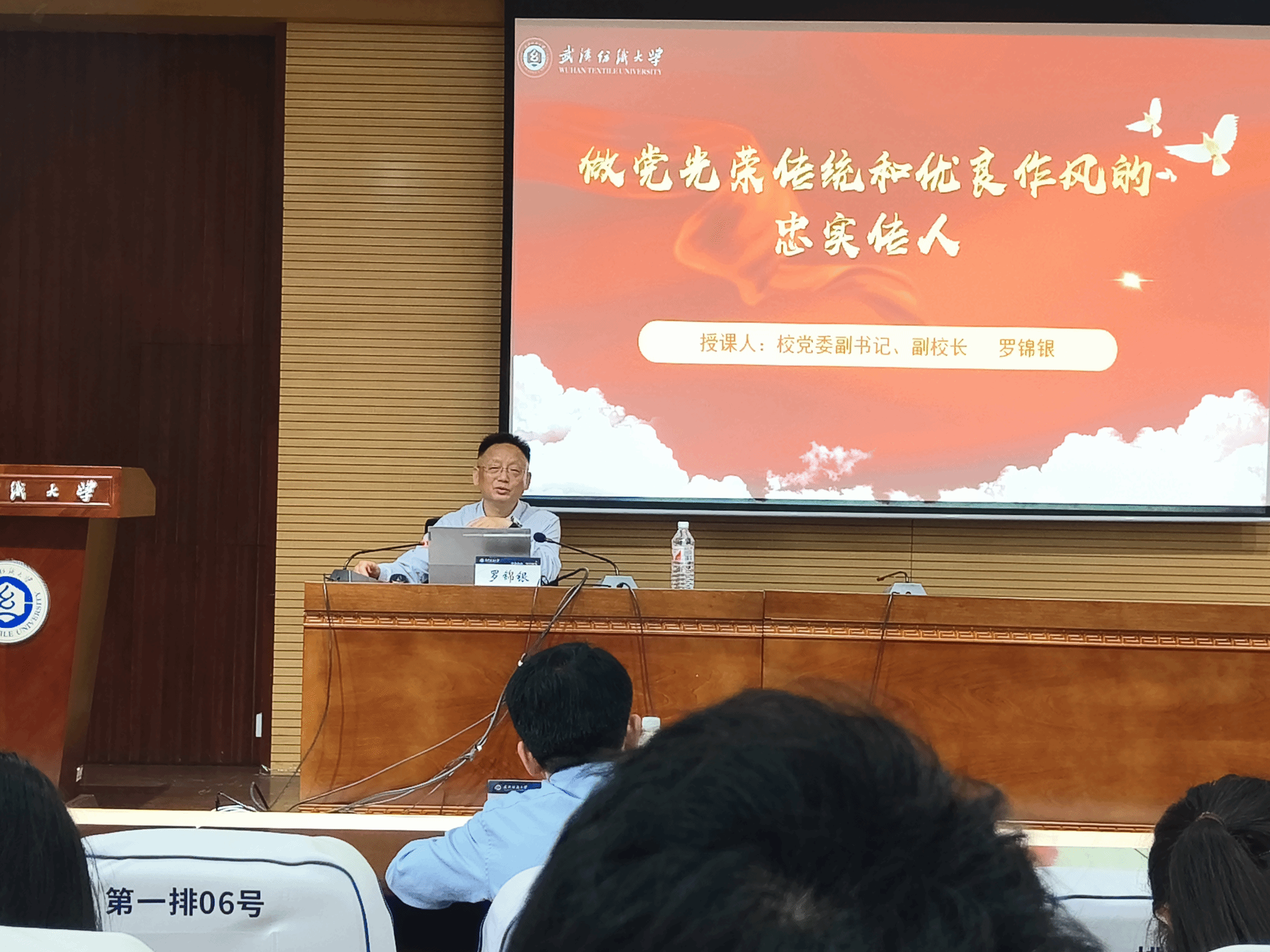 4月17日下午,校党委副书记、副校长罗锦银在阳光校区行政楼二楼学术报告厅为材料学院、纺织学院学子讲授主题为“做党光荣传统和优良作风的忠实传人”的党课。校团委负责人张德科、材料学院党委书记王罗新、纺织学院党委书记朱张军,材料学院、纺织学院党委副书记、辅导员,校级学生组织主要学生干部代表、罗书记结对宿舍、材料学院、纺织学院全体入党积极分子参加本次学习。