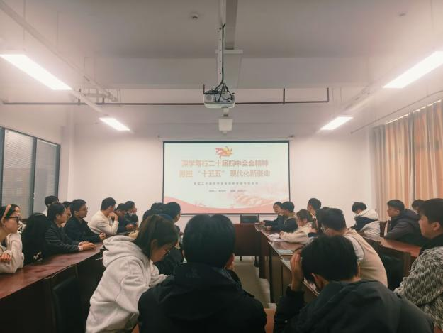 为深入学习贯彻党的二十届四中全会精神,准确把握“十五五”规划的战略部署,11月27日上午,材料学院材化研究生党支部在12教309会议室开展主题党日活动,支部书记曾玉竹以《深学笃行二十届四中全会精神,勇担“十五五”现代化新使命》为题,为全体党员讲授了一堂内容丰富、立意深远的专题党课。学院支部全体党员及入党积极分子全员参加。