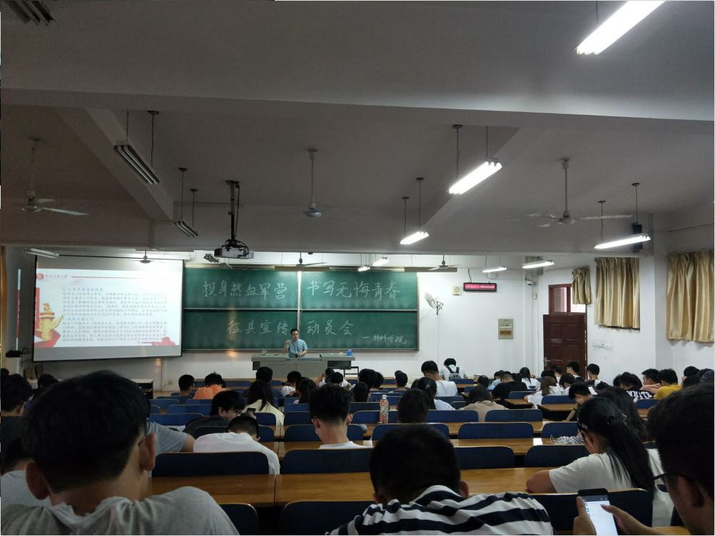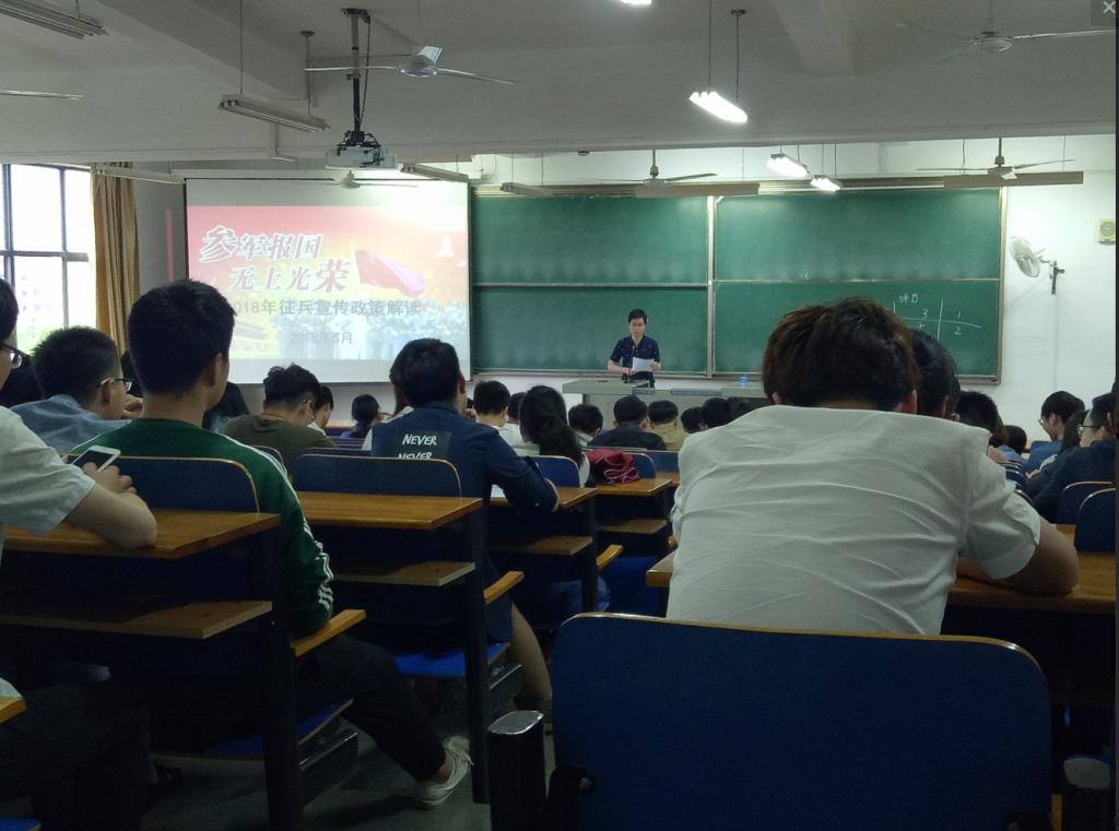 宣传大会上,祝捷老师、张辉老师、黄鹤老师分年级介绍了我校2018年大学生应征入伍工作方案,结合我院学生实际情况,广泛开展了宣传动员。张辉老师指出,要准确把握党在新时代的强军目标,对高素质兵员的迫切需要,认真践行广大青年学子响应祖国号召,把爱国之心化为报国之行的要求。祝捷老师认为,征兵入伍是大学生成长成才的需要,是巩固国防,建设世界一流军队的需要。黄鹤老师重点就大学生参军的要求、流程以及大学生参军特别优惠政策给我院毕业生进行了一对一的宣讲。