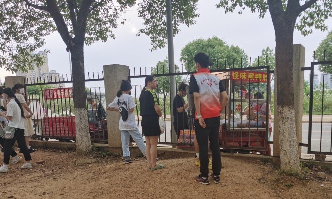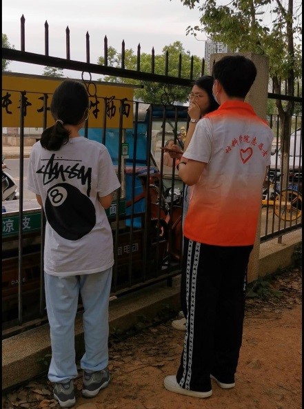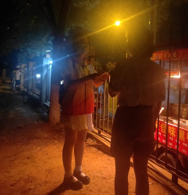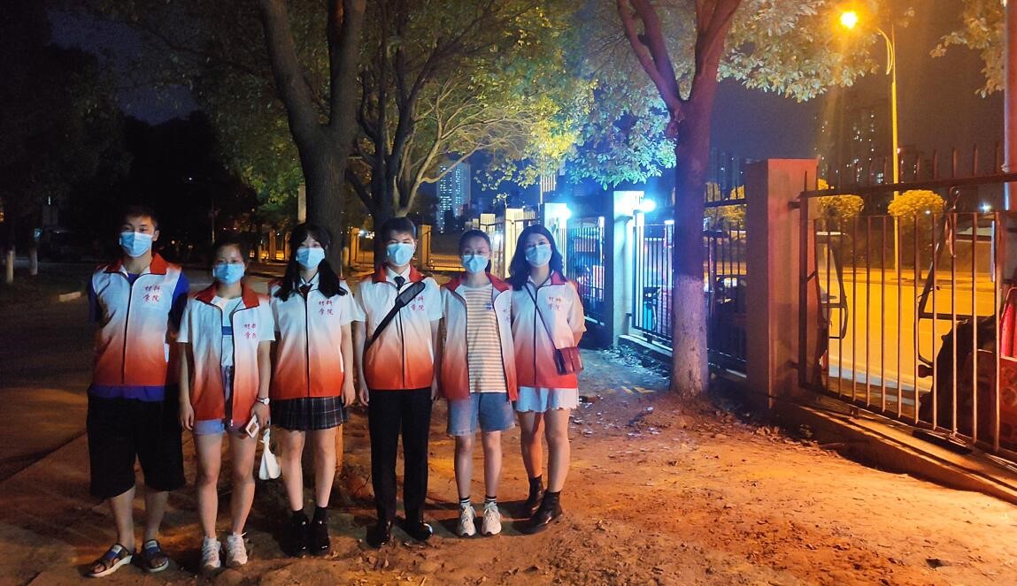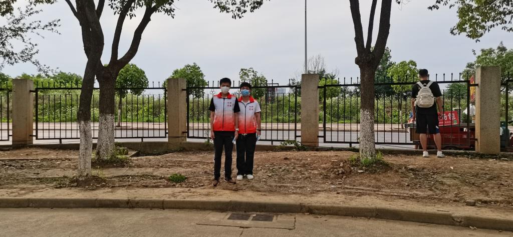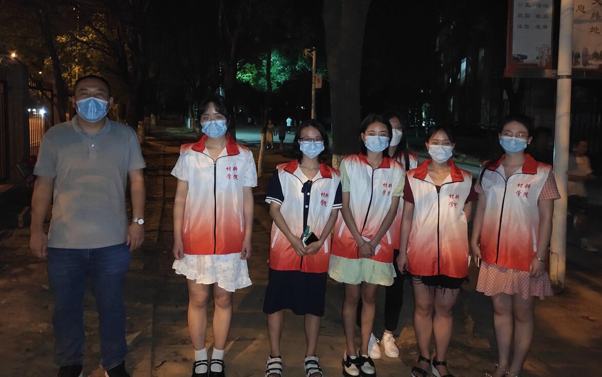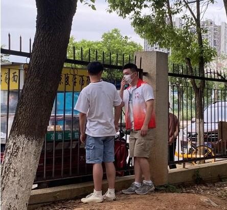 6月8日晚,材料学院毕业生党员积极报名参加校园疫情防控巡逻志愿服务活动,提醒正在校园围栏处购物的同学们戴好口罩、做好个人防护。