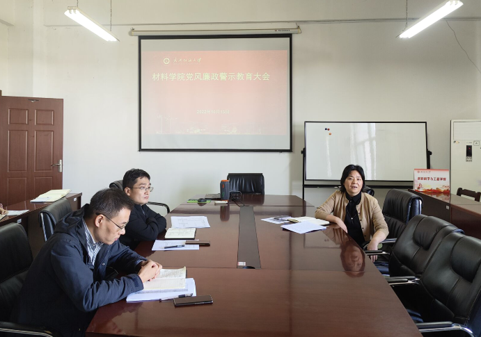 10月13日下午,材料学院在506会议室召开全院教师党员党风廉政警示教育专题会,会议由学院党委书记陈桂枝主持并给全体教职工上廉政党课。