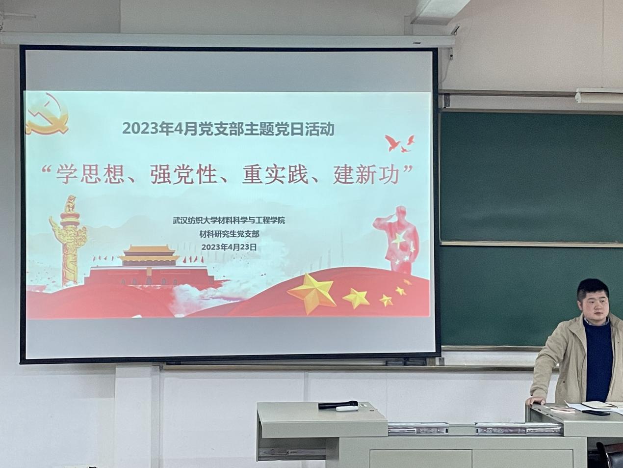 深入开展学习贯彻习近平新时代中国特色社会主义思想主题教育,强化研究生党性修养,OK138太阳集团材科研究生党支部于2023年4月23日下午在8F-T101教室举办4月主题党日活动,支部书记为支部全体党员、积极分子带来题为《学思想、强党性、重实践、建新功》的党课。