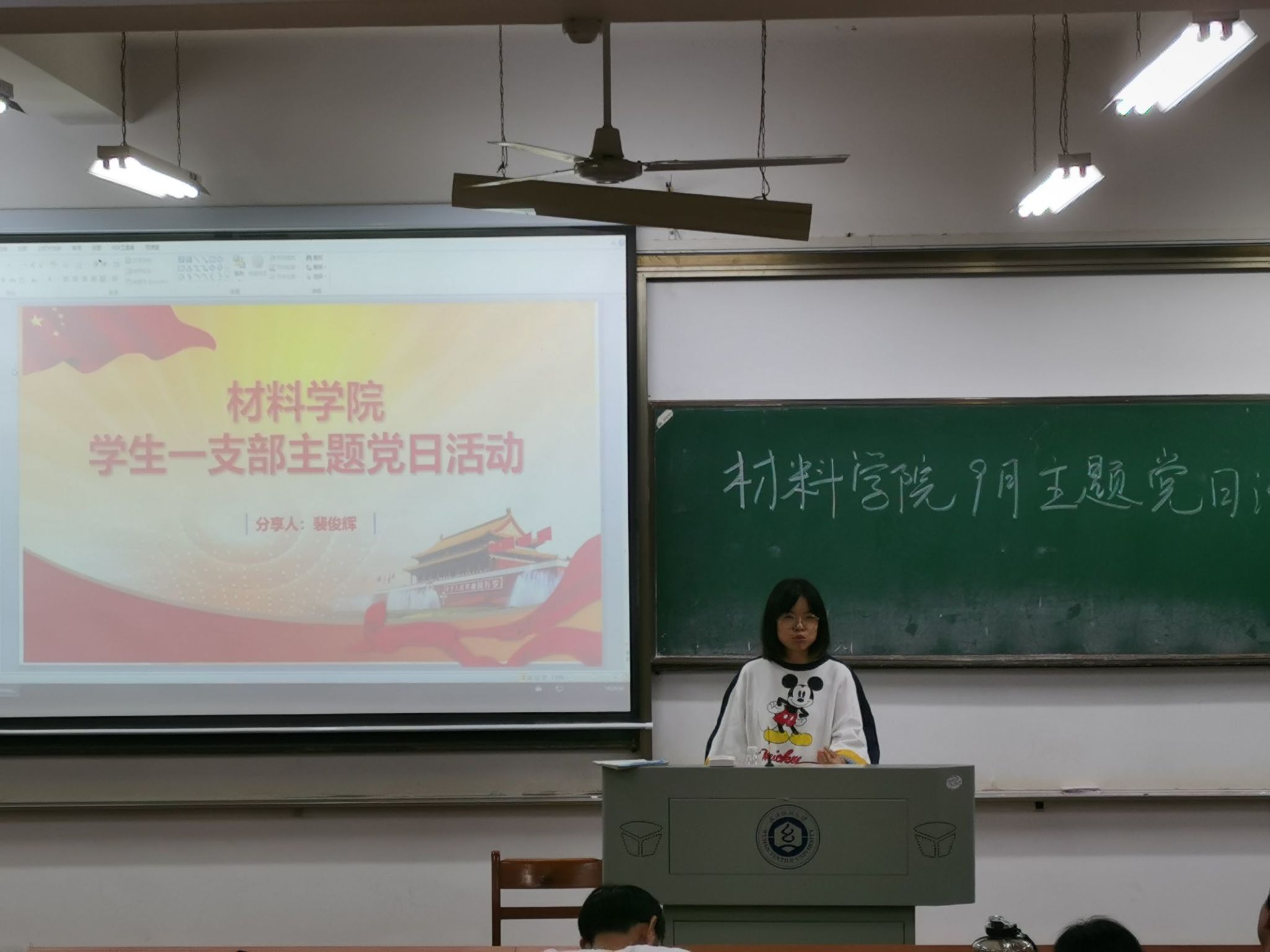 9月22日19:00,材料学院第一学生党支部开展“不负韶华、强国有我”主题党课,党课由支部书记曾玉竹主讲,全体支部成员参加。