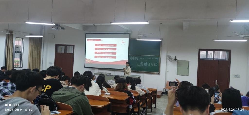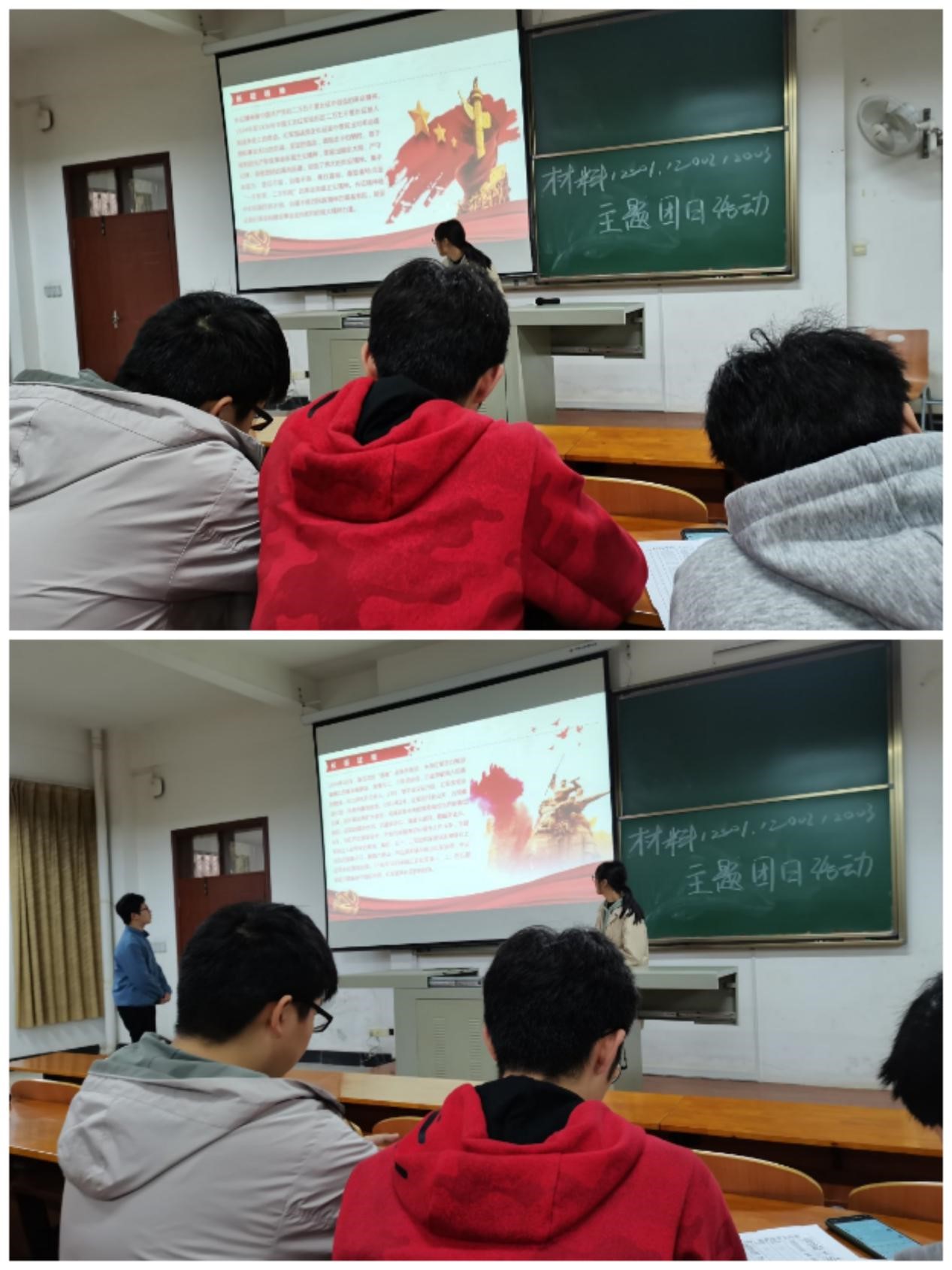 为庆祝建党100周年,加强学生的爱国爱党意识,弘扬党的精神,引导学生领悟中国共产党百年奋斗光辉历程和中国共产党为人民谋幸福的初心,提升政治素养和传承红色基因,材料学院各班级于4月24日晚在8栋教学楼开展了“学党史知党情跟党走”主题班会。会议由各班班长和团支书主持。