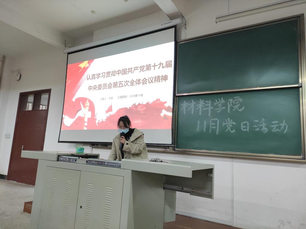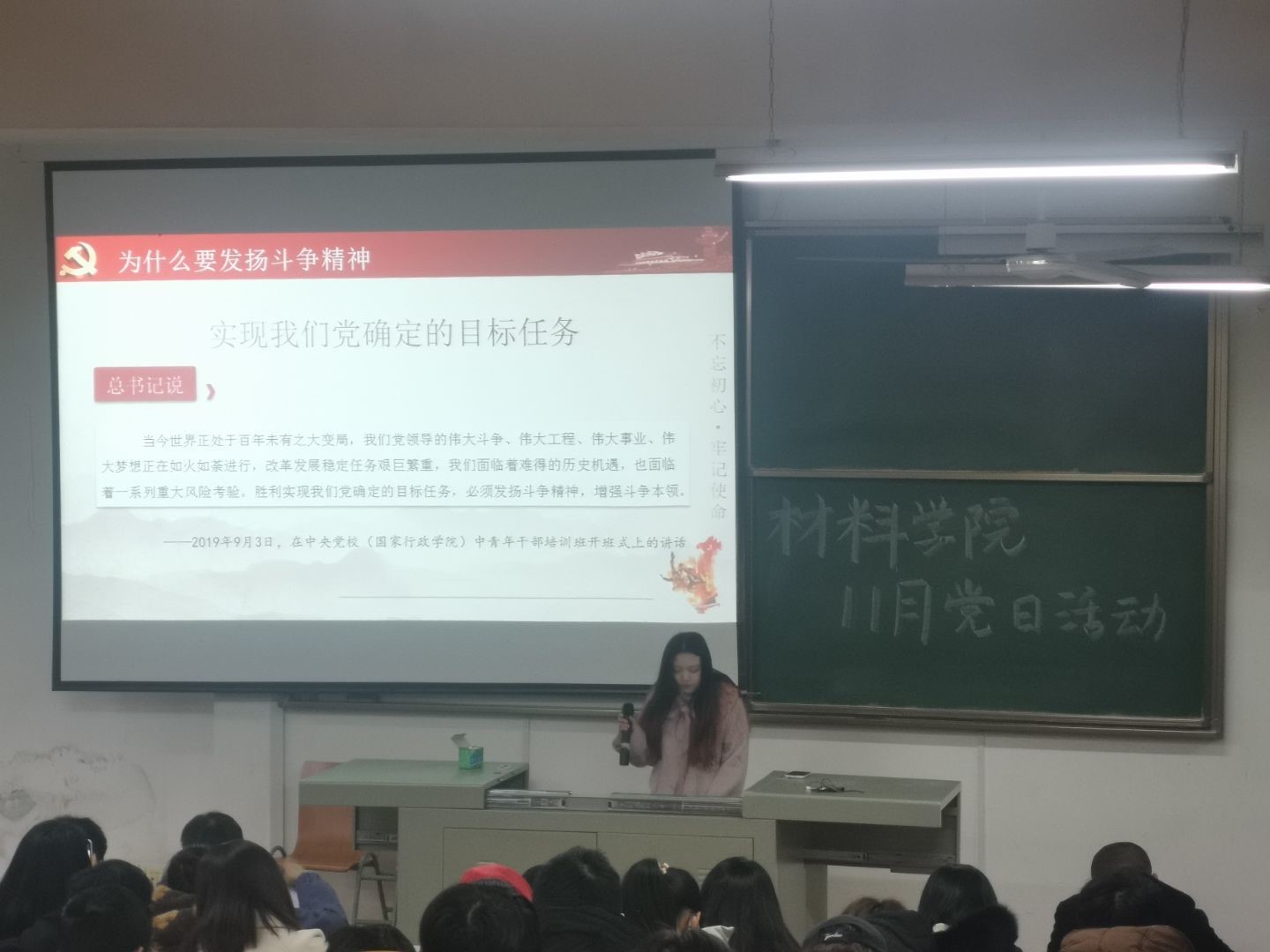为深入贯彻落实中央有关精神,根据上级党委要求,材料学院学生党支部于11月22日下午开展了“深入贯彻落实习近平总书记重要讲话精神,不断提高教育治理能力和水平,为办好人民满意的高等教育作出积极贡献”主题党日活动。本次活动由学生第二党支部吕鑫杰主持。