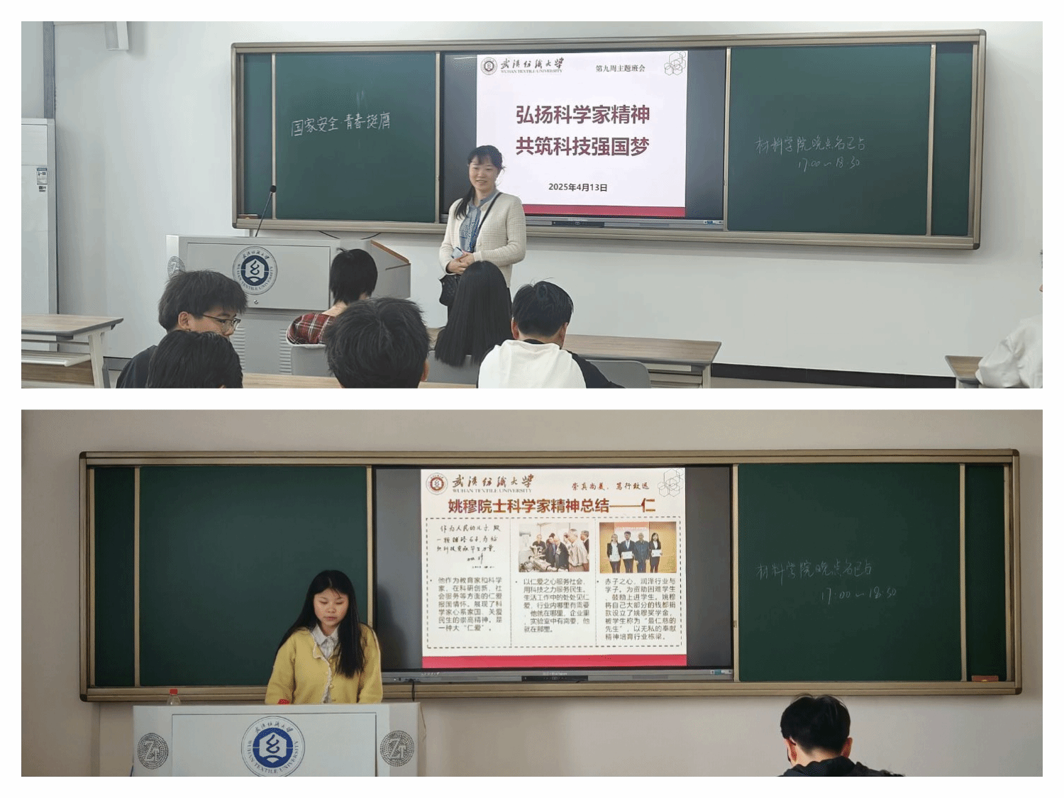 4月13日晚,材料学院召开“弘扬科学家精神,共筑科技强国梦”主题班会暨学院第九周晚点名班会。学院学生工作负责人、全体辅导员及本科生班主任、材料学院全体学生参加此次班会。