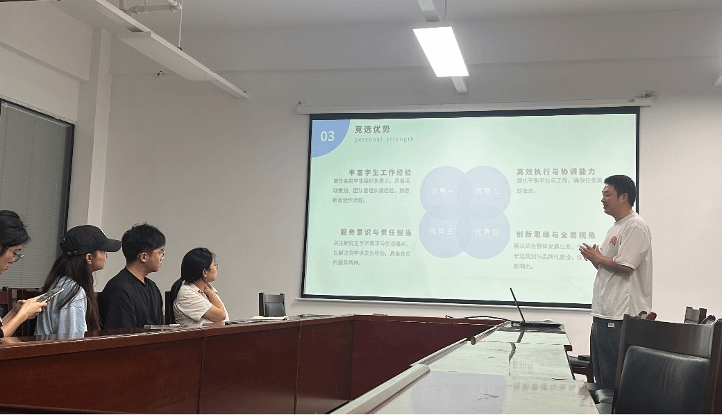 在换届竞选答辩阶段,多位有志于服务同学、锻炼自我的研究生同学依次登台,围绕个人工作经历、对研会工作的认识理解、竞选优势以及未来工作设想等方面进行了精彩纷呈的展示。候选人准备充分,思路清晰,结合自身在学术科研、活动组织、沟通协调等方面的特长,提出了诸多富有创新性和可行性的工作规划,充分展现了材料学院研究生积极向上、乐于奉献、敢于担当的精神风貌。